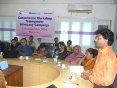 To organize the efforts of transgender for their rights in Pakistan, actionaid Pakistan with the collaboration of AAS (AIDS Awareness Society), in November 2010, organized a series of provincial consultation workshops with transgender in Lahore and Karachi, in which representatives of transgender from Sindh and Punjab realized that they need a platform, that would strengthen their efforts for their rights at local, provincial and national level